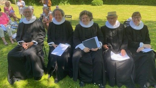 Friluftsgudstjeneste i haven ved Skovby Sognehus