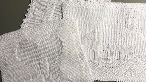 Strikkegruppen mødes til nogle hyggelige timer, hvor vi strikker dåbsklude til dåbsbørnene og hækler bogmærker til konfirmanderne.