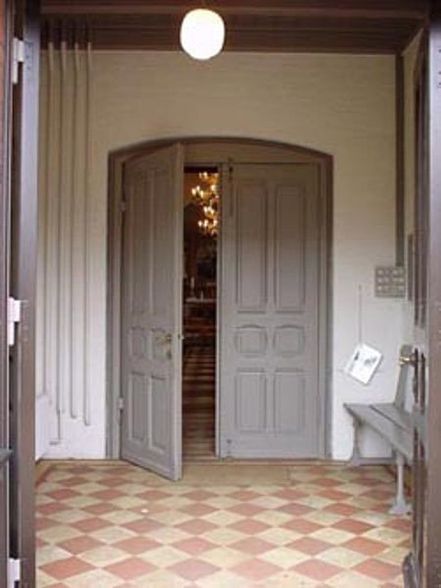 Tidligere har den været stafferet i stærke røde og grønne farver. Dette blev siden afpudset.